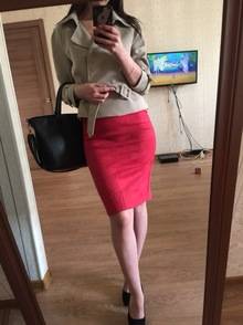Бюджетная юбка-карандаш с завышенной талией Юбка хорошая за свою цену , всего лишь 356, 96₽ сейчас дороже 389, 05₽ Ткань напоминает искусственную замшу, продавец заявляет что хлопок полисэстер, ткань тянется. На свои параметры от 62 об 89 рост 164 см заказала S подошёл идеально Под юбку нужно носить бесшовное белье, всё выделяется. Юбку можно сочетать с любым стилем , она универсальна, впишется в любой образ