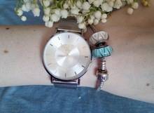 Любовь с первого взгляда!! Очень красивые, лаконичные часики. После того как получила с ними посылку, ношу с удовольствием каждый день. На моё узкое запястья в 17 см подошли великолепно.
