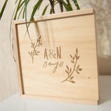 Деревянная шкатулка для фотографий в комплекте с флешкой. Отлично подойдет для подарка, в моем случае в коробке будут находится фотографии с дня бракосочетания на бумажном носителе и в цифровом виде. Коробка вмещает в себя фотографии размером 10 на 15см, объем флешки (usb 2. 0) от 8гб до 64гб на выбор.