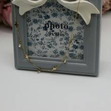 Цепочка звеньевая, украшена маленькими подвесками в форме звёзд, также камнями циркония. Камушки красиво сверкают.